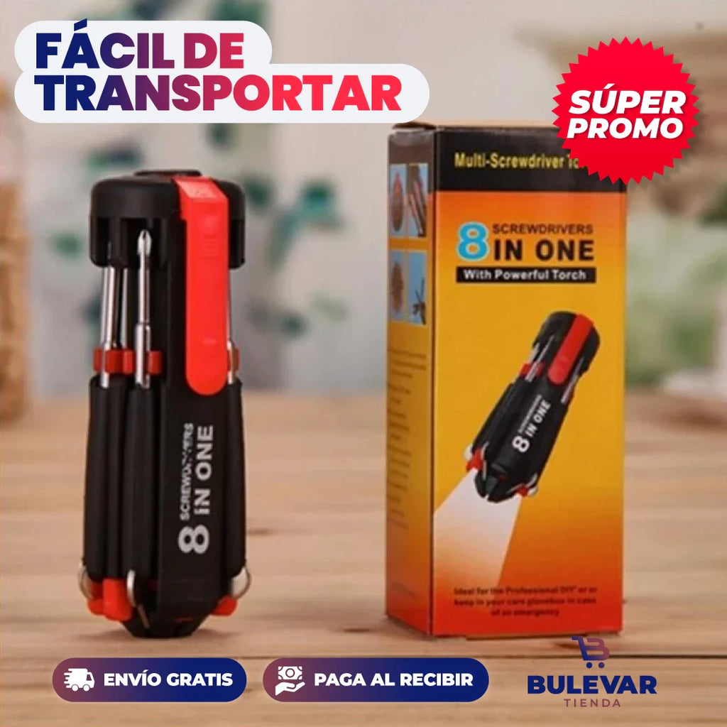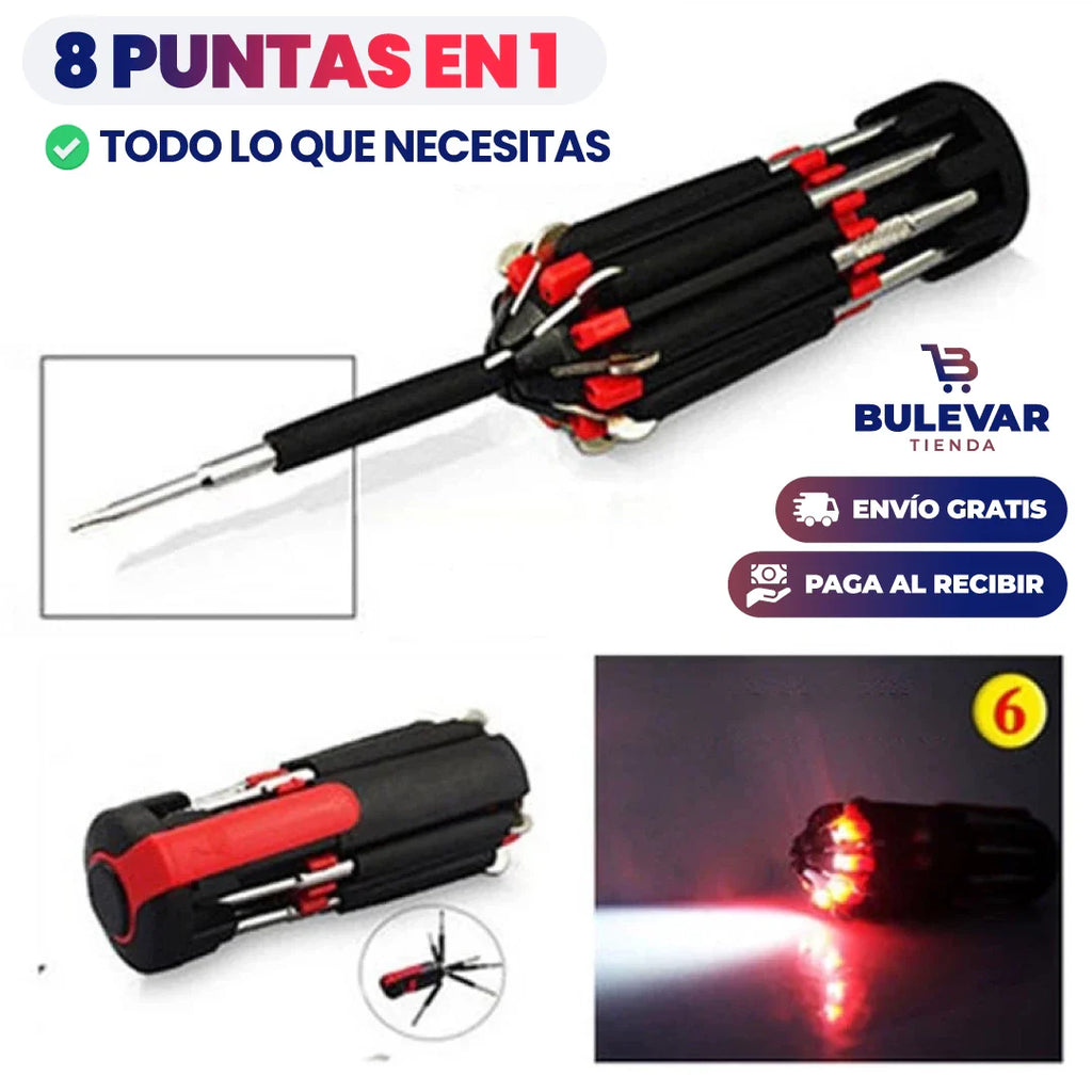 1. UN DESTORNILLADOR Y LINTERNA MULTIFUNCIONAL 8 EN 1.